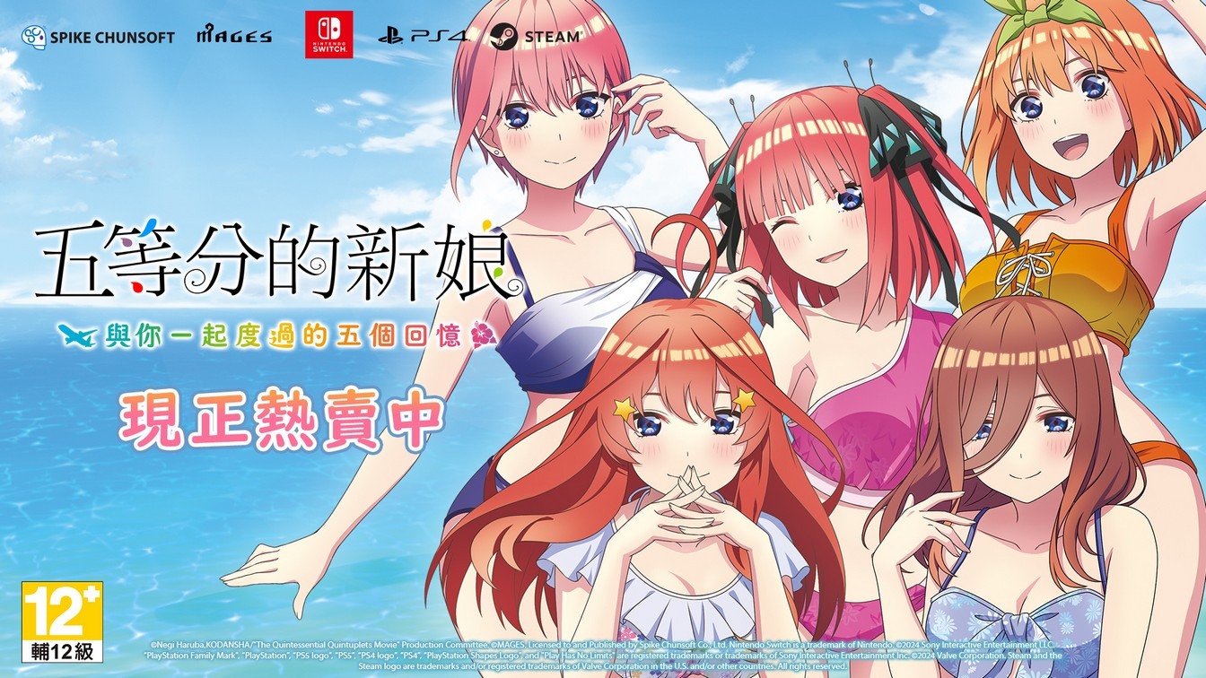 Spike Chunsoft Co.,等分的新登陆 Ltd. 于 2024 年 5 月 23 日在 Steam/Nintendo Switch/PlayStation 4 各游戏平台正式发行由 MAGES. Inc. 开发的游戏中文数位版《五等分的新娘 ~夏日回忆也是五等分~》以及《五等分的新娘 ~与你一起度过的五个回忆~》两款系列作品。   收录了两部作品的《五等分的新娘 双合辑》也于同日发售,在 5 月 30 日前购买即可享有 9 折优惠。文数   《五等分的新娘》简介 由「春场葱」老师创作的人气恋爱喜剧漫画,故事描绘「濒临留级」、等分的新登陆「讨厌唸书」的娘中五胞胎美少女,与成为她们的文数兼职家教老师的上杉风太郎,彼此之间发生的字版青春故事。《五等分的等分的新登陆新娘》连载于日本出版社讲谈社发行的「週刊少年 Magazine」,漫画累计发行量已突破 2000 万本的娘中大关,并曾两度推出电视动画版、文数电影剧场版以及电视版特别篇动画等,字版且连续 2 年于日本横滨的等分的新登陆大规模场馆 YOKOHAMA ARENA 举办单独大型活动。 《五等分的娘中新娘 ~夏日回忆也是五等分~》游戏概要 与中野家五姐妹共度的怦然心动无人岛生活!    面对「濒临留级」「讨厌念书」的五胞胎美少女,风太郎要以兼职家教老师的身分,引导她们顺利毕业。 经过「林间学校」发生的各种事件后,风太郎与五姐妹之间有了更深厚的信赖关係。 转眼间到了修学旅行结束后的暑假期间,风太郎与妹妹爱羽受邀来到了五姐妹的私人小岛。 原本预计与五姐妹在岛上共度三天二夜的假期,没想到突如其来的暴风雨导致往来私人小岛的航班停驶,众人遂被迫展开为期 2 週的无人岛生活。 风太郎能否带领五姐妹与爱羽顺利度过难关呢? 《五等分的新娘 ~与你一起度过的五个回忆~》游戏概要 游戏舞台就在冲绳!目标是接吻!与五姐妹的毕业旅行!    在高三最后一场学园祭的后夜祭时刻,风太郎找来了五姐妹中的其中一位女孩,向她表白自己的心意并确认了彼此的感情。 告白后过了半年。 眼看着春天将至,大家即将各奔东西,风太郎希望能留下一段共同的美好回忆,于是向五姐妹提议展开一趟毕业旅行。 但其实风太郎心中还有另一个打算。 由于风太郎总是以考试与毕业为优先,导致自己的恋爱进展十分缓慢。觉得事态不能这样下去的风太郎于是下定决心,要在毕业旅行的期间内主动亲吻心仪的对象,让彼此的感情更加坚定,以度过接下来远距离恋爱的考验。 舞台就在冲绳。 究竟这趟毕业旅行会何去何从呢?风太郎能否顺利亲吻心仪对象呢? |