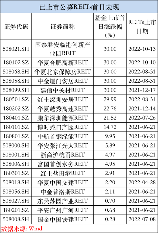 她还表示,目前已发行的项目中,首天跌停的项目均为产权类项目,都有资质好、优中选优的特点,这也说明了从当前消费市场认可度来看,产权类项目和稀缺金融资产项目更受到投资人的青睐 19只公募公募基金REITs挂牌上市年来平均涨超28%。