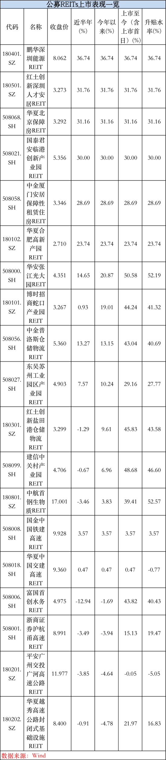 盐田港仓储物流、博时招商蛇口工业园、富国首创水务、中金普洛斯仓储物流在内4只REITs挂牌上市年来也涨超40%。