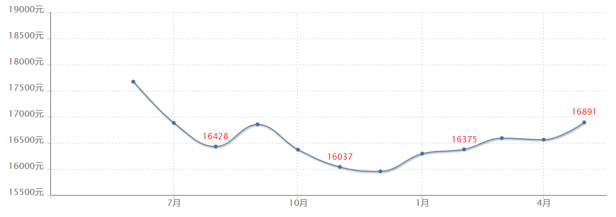 据国家统计局数据,4月末重庆二手房住宅价格同比下跌3.5%,较之上月下跌幅度略有收窄,但这已是重庆二手房价格连续14个月同比下跌,说明重庆二手房市场仍在下探另据据房天下研究院监测,5月重庆二手房挂牌均价为16891元/万平方米,环比上涨1.99%,同比则下跌5.30%。