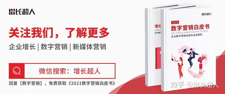 假如对企业增长和数字赢营销感兴趣的,也可以关注我的公众号(增长超人),下面会定期撷取 企业增长 | 数字营销 | 新媒体营销 等相关干货文本。