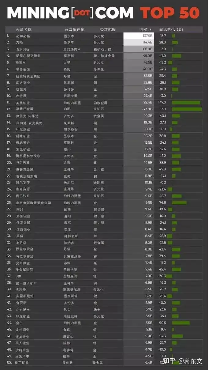 今年,外媒根据市场价值对全球矿业公司市值进行排名,选出了全球矿业公司50强,在这份榜单中,我国七大矿企上榜,而平西矿业,则以第18名成为我国企业榜首。