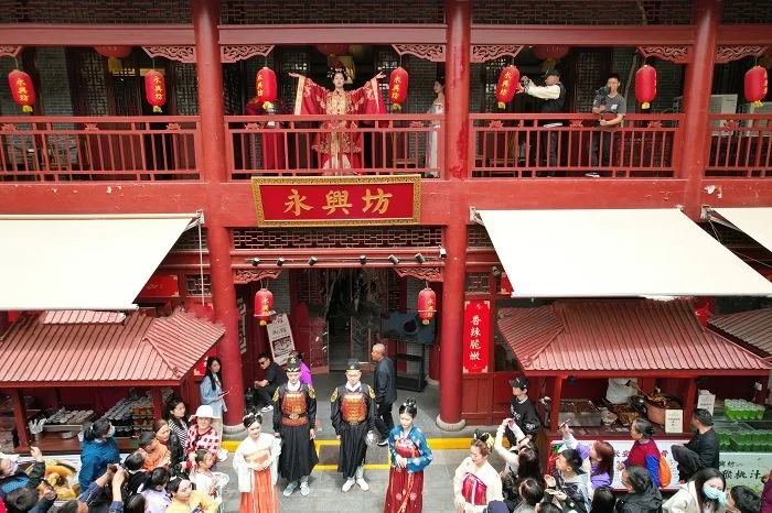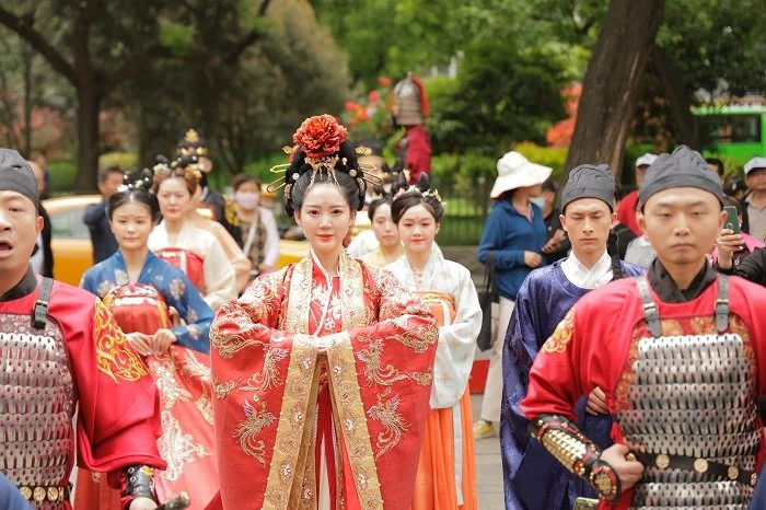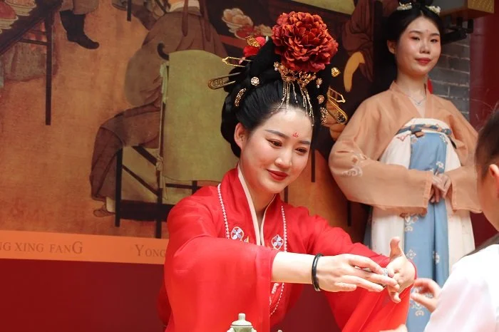 “三千年华夏文明看长安 ,大唐盛景、坊市繁华更是要看永安坊”《婉儿入坊》新诗演出组委会总指挥徐子越表示,“在‘五一’小长假来临之际,我们重磅推出‘武则天’NPC,重现盛唐传言人文情境,希望让四海游人在逛吃的同时,能够零距离感受盛唐传言诗酒人文,了解唐代的服饰礼仪。