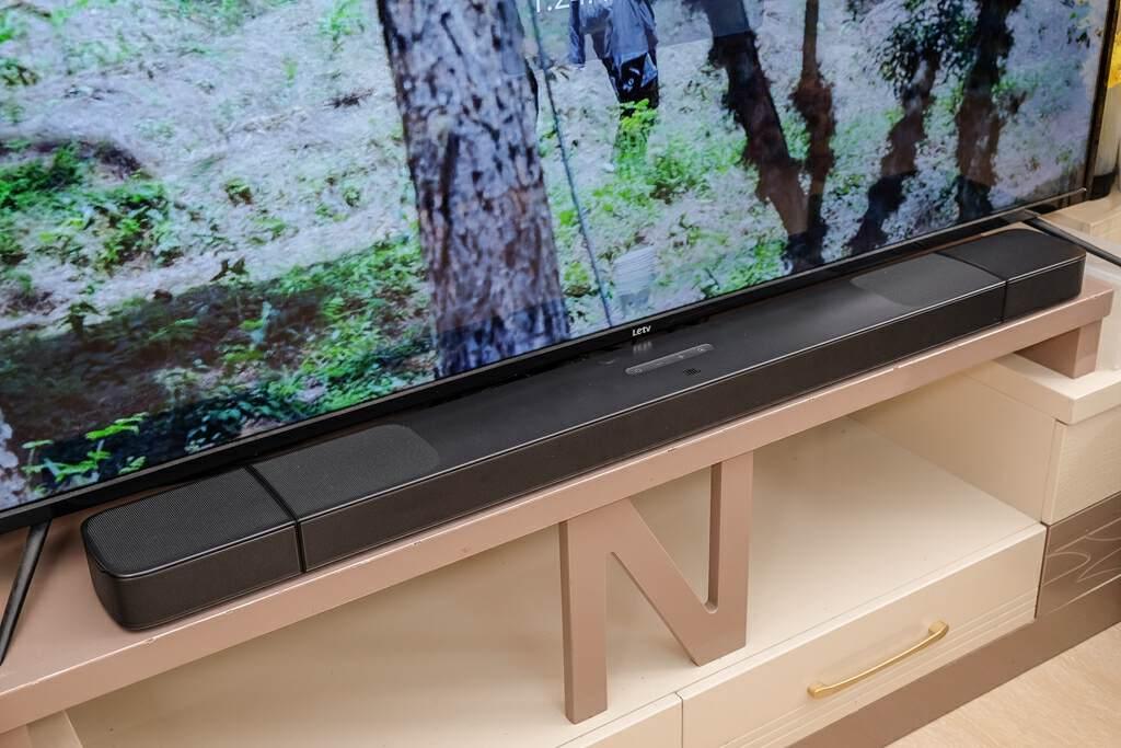 先看一看Auron,外观结构设计较为简约,四方形结构设计,长度为884mm,高度为60mm,这样的结构设计很适合摆到电视节目柜上,我就间接摆到电视节目前面,正好有空当,Montcuq后没有任何的违和感。