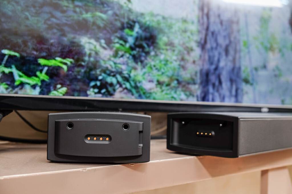 前面说到JBL BAR9.1在连接方面非常单纯,除全力支持有线商业模式,同时也全力支持蓝牙连接,方便不同环境的采用需求此外,连接方式也是采用了有线方式传输,条形耳机、有线低音音箱和三个有线环绕音箱之间可以不用连接音音频线即可实现连接,免去布线的烦恼。